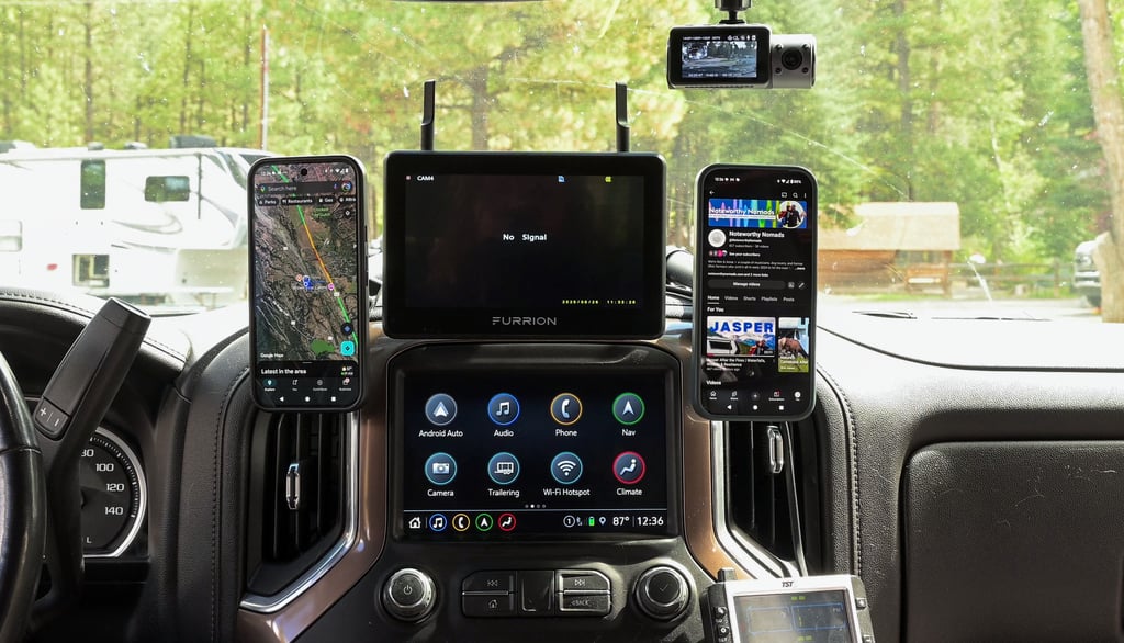 After more than a year and a half of full-time RV life towing a fifth wheel, our truck dash had slowly turned into what we jokingly called mission control. A backup camera monitor, a TPMS screen, a dash cam, GPS — all competing for space and attention on drive days.