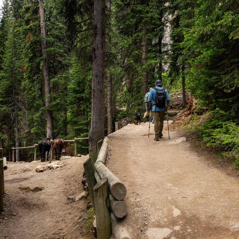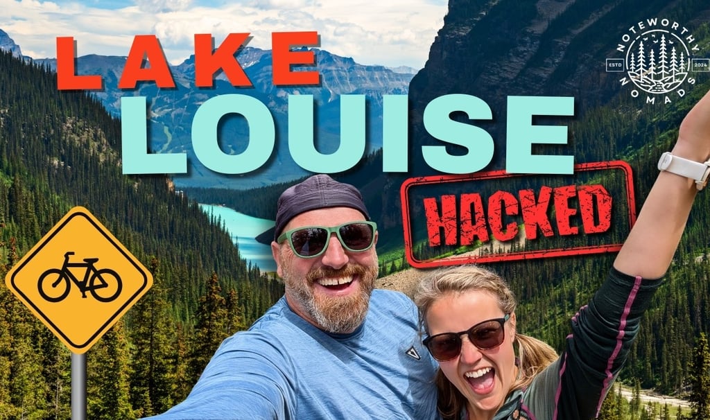 If you've ever been to Lake Louise in the summer, you already know: the water is turquoise, the mountains are massive, and the crowds? Also massive. But we discovered a little trick that completely changed our experience — biking to the lake instead of driving.