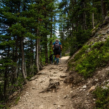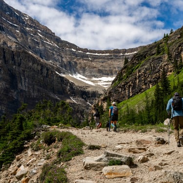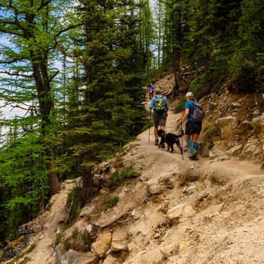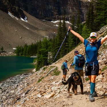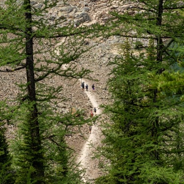 Three days later, with fresh legs and a sunny forecast, Will, JoJo, and I biked back up to the lake to tackle the Plain of Six Glaciers — a longer trail that follows the shoreline before leading deep into a glacial valley.